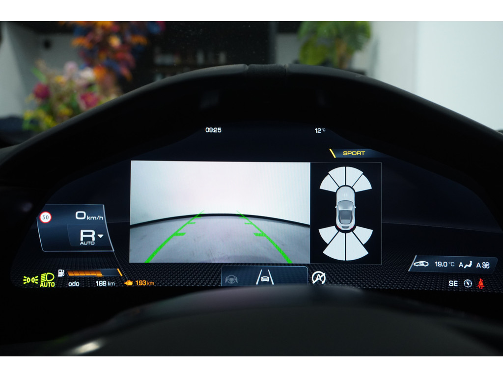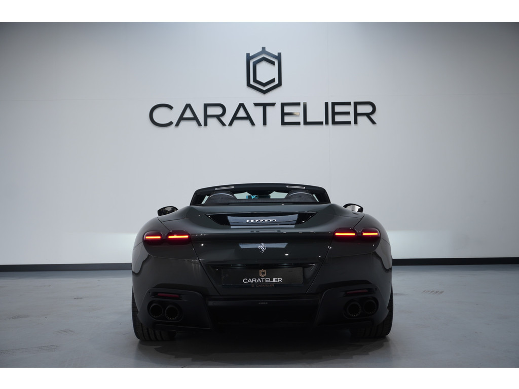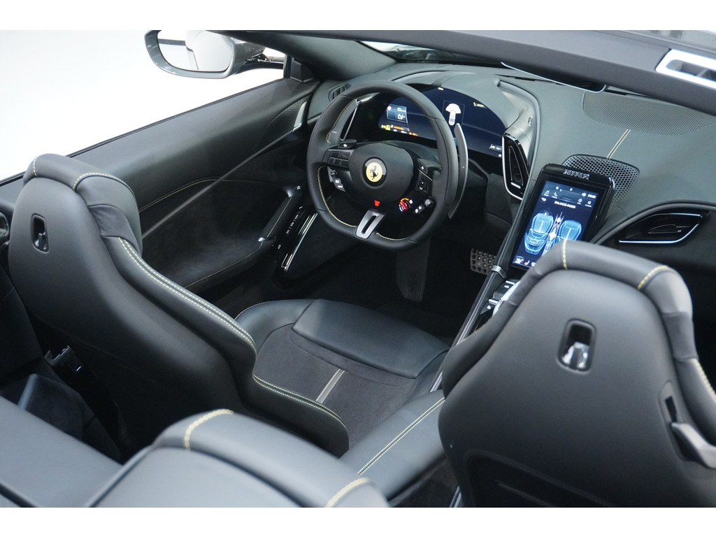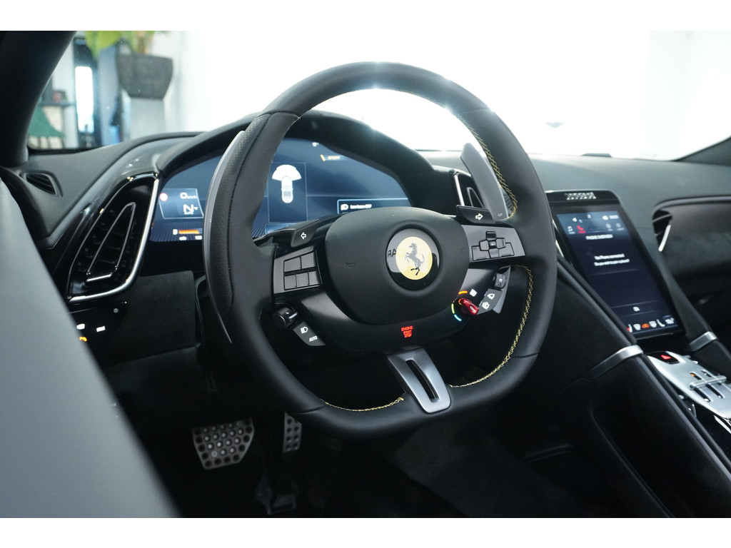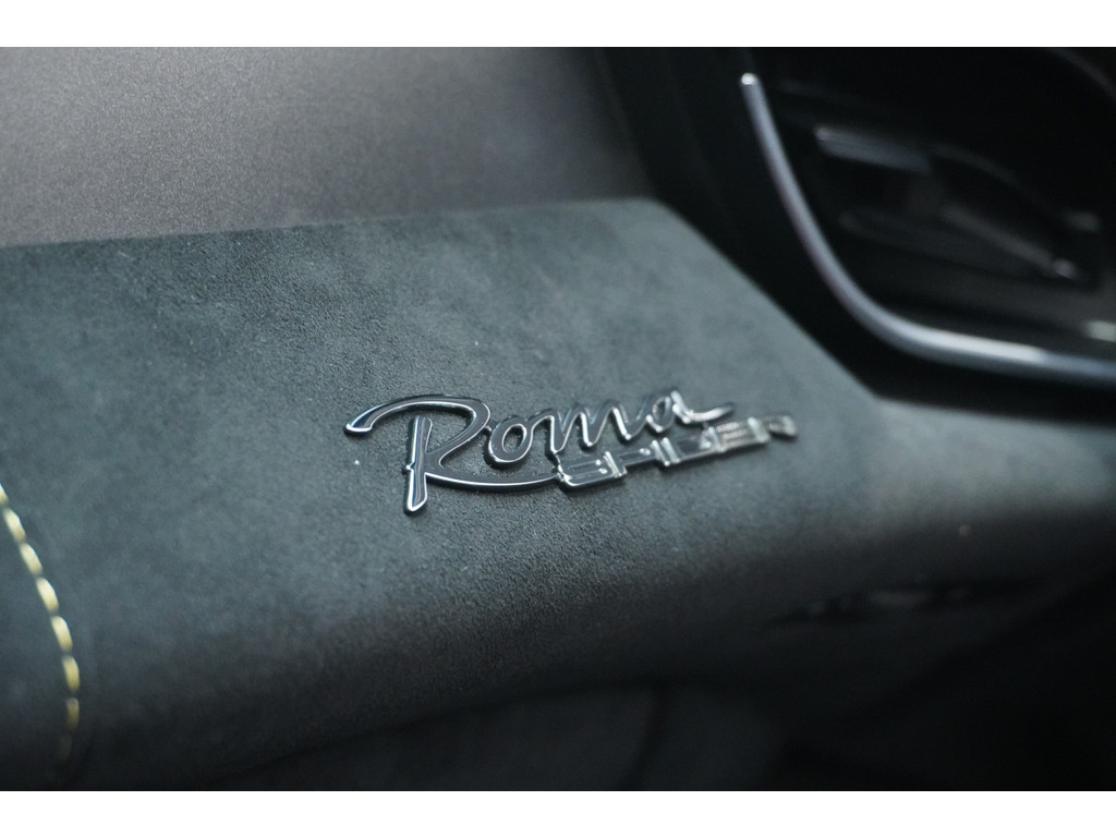 Soepel inparkeren gaat gemakkelijker dan u verwacht dankzij de achteruitrijcamera. Adaptive cruise control houdt de ingestelde snelheid vast en houdt automatisch afstand tot uw voorligger. Zo'n lekkere jonge auto heeft natuurlijk leuke extra's, zoals remote services. Met een speciale app maakt u overal verbinding met de auto. Zo kunt u functies activeren en controleren. Telefoon onderweg aan de lader? Daar komt geen kabeltje aan te pas, want deze Ferrari Roma Spider is voorzien van een draadloze oplaadmogelijkheid voor telefoons. Ook automatisch dimmende binnenspiegel en lederen stuur zijn aan boord.