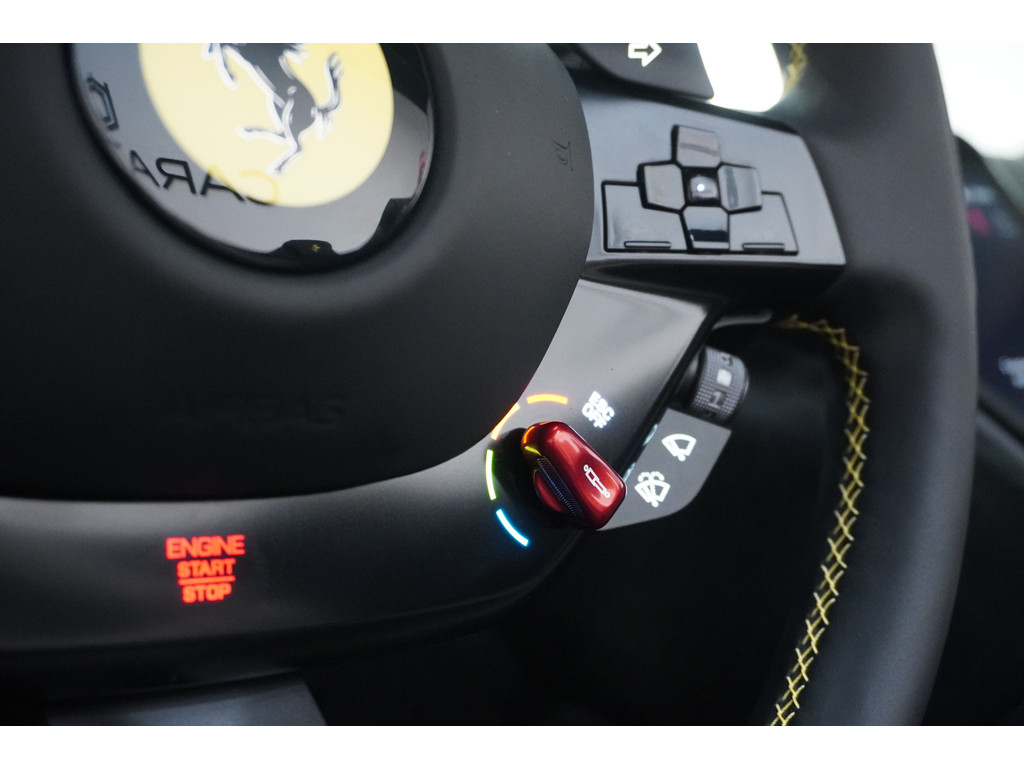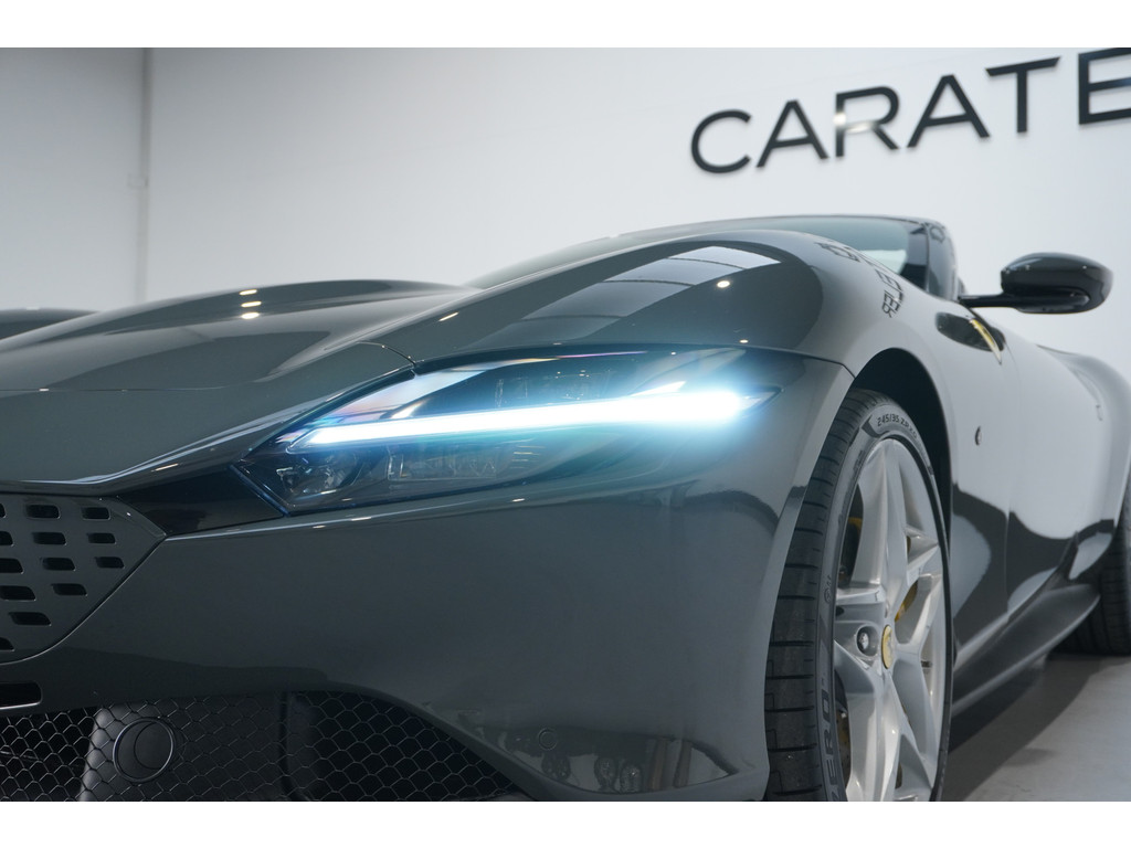 Soepel inparkeren gaat gemakkelijker dan u verwacht dankzij de achteruitrijcamera. Adaptive cruise control houdt de ingestelde snelheid vast en houdt automatisch afstand tot uw voorligger. Zo'n lekkere jonge auto heeft natuurlijk leuke extra's, zoals remote services. Met een speciale app maakt u overal verbinding met de auto. Zo kunt u functies activeren en controleren. Telefoon onderweg aan de lader? Daar komt geen kabeltje aan te pas, want deze Ferrari Roma Spider is voorzien van een draadloze oplaadmogelijkheid voor telefoons. Ook automatisch dimmende binnenspiegel en lederen stuur zijn aan boord.