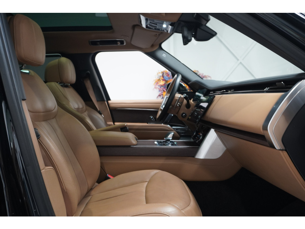 Deze jongvolwassen Land Rover Range Rover met de nieuwste technologie aan boord is net lekker voor u ingereden. De auto is van het bouwjaar 2023 en is van de eerste eigenaar. Hij heeft een benzinemotor en een automatische transmissie. De innovatieve luchtvering technologie verbetert het rijcomfort door alle hobbeligheden in het wegdek te minimaliseren. Van binnen is deze Land Rover Range Rover mooi uitgevoerd met een classy lederen interieur. Deze Land Rover Range Rover heeft niet alleen verwarmbare voorstoelen, maar ze zijn ook nog eens voorzien van massagefunctie. U past de stoelen moeiteloos aan, ze zijn elektrisch in te stellen en hebben bovendien een geheugen. Voor extra lichtinval en een frisse luchtstroom zorgt het elektrisch bediende panoramadak. De elektrische achterklep opent met een druk op de knop, zodat u gemakkelijk toegang heeft tot de bagageruimte. In deze Land Rover profiteert u onder andere ook van: 22 inch lichtmetalen velgen, LED-koplampen, adaptief dempingsysteem, geluidsisolerende ramen, trailer assistent en dakspoiler.